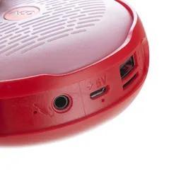 دستهبندی: اسپیکر قابل حمل نوع اتصال: بیسیم و باسیمروشهای پخش: بلوتوث، AUX، فلش مموری، کارت حافظه TFتوان خروجی واقعی (RMS): 5 وات فرکانس پاسخگویی: 120 هرتز تا 20 کیلوهرتزنسبت سیگنال به نویز: 85 دسیبل نوع جک ورودی صدا: 3.5 میلیمتری درگاههای ورودی: AUX، USB، کارت حافظه TFبلوتوث: داردNFC: نداردورودی/خروجیهای دیگر: فاقد RCA، اپتیکال، کواک سیال، خروجی هدفون، ورودی میکروفون میکروفون داخلی: داردقابلیت مکالمه: داردحذف نویز میکروفون: نداردپشتیبانی از محتوای Hi-Res: نداردمقاومت در برابر رطوبت: مقاوم در برابر رطوبت (فاقد گواهی IP)منبع تغذیه: باتری داخلی ظرفیت باتری: 500 میلیآمپر ساعت شارژدهی: تا 6 ساعت پخش موسیقیطریقه شارژ: از طریق درگاه Micro USBجنس بدنه: پلاستیک ابعاد: 85 × 85 × 50 میلیمتروزن: 165 گرم نشانگر LED: داردنورپردازی: نداردسایر ویژگیهای ظاهری: دارای بند حمل اقلام همراه: اسپیکر، کابل AUX، کابل Micro USB، دفترچه راهنما