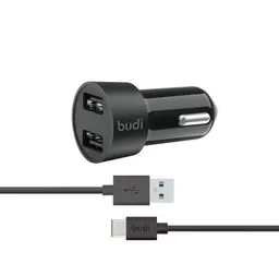 شارژر فندکی 24 وات بودی مدل Budi M8J622TB با 2 خروجی USB به همراه کابل USB به USB مشکی
